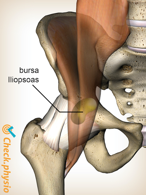 El iliopsoas es el músculo que flexiona la articulación de la cadera y rota el muslo hacia fuera. El iliopsoas se une al fémur mediante el tendón. La bursa situada debajo del músculo garantiza que todo se deslice con suavidad y evita la fricción. La bursa mide aproximadamente de 5 a 7 cm de largo y de 2 a 4 cm de ancho.